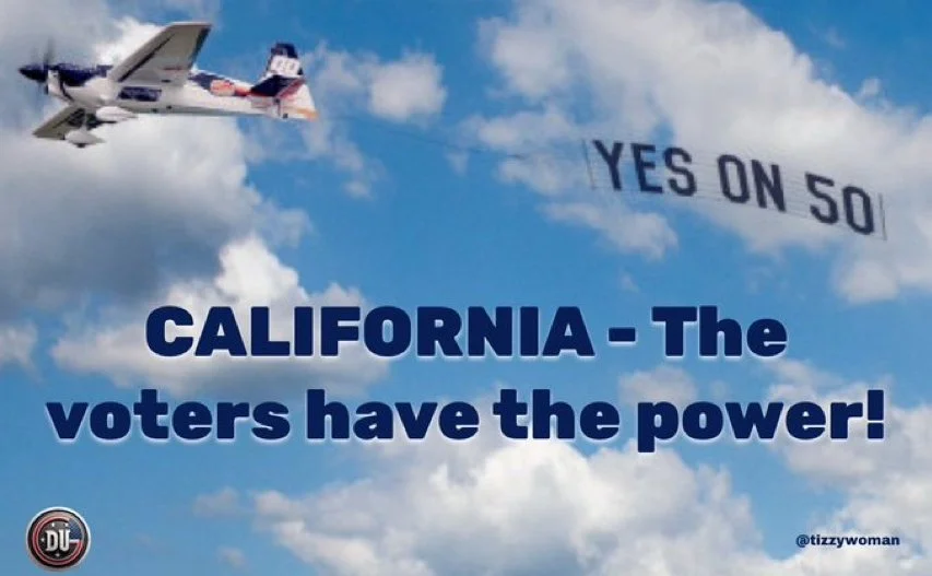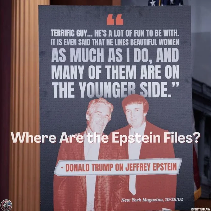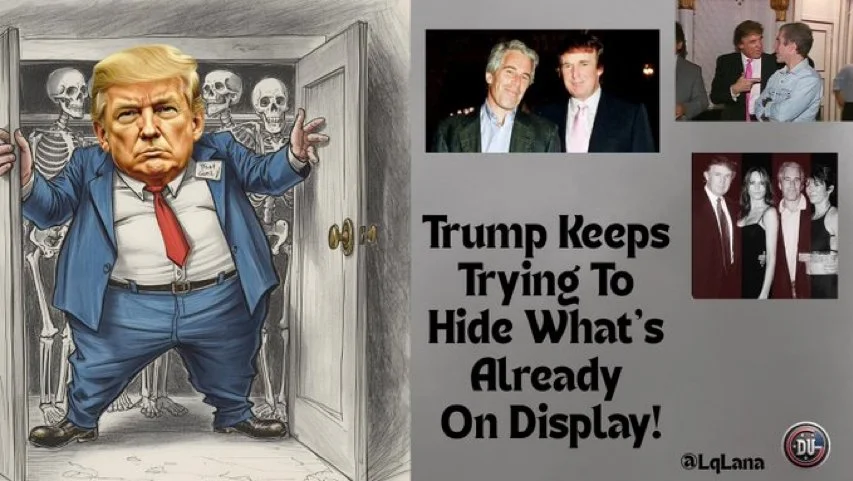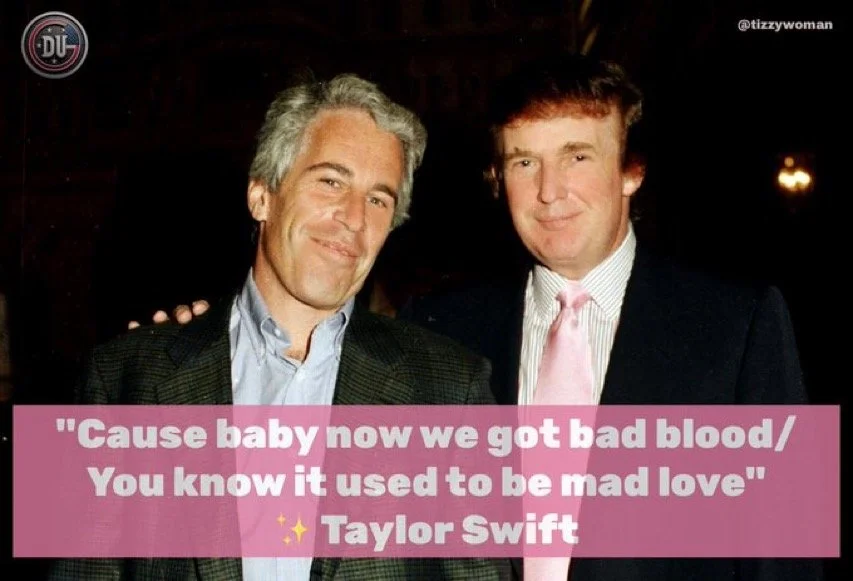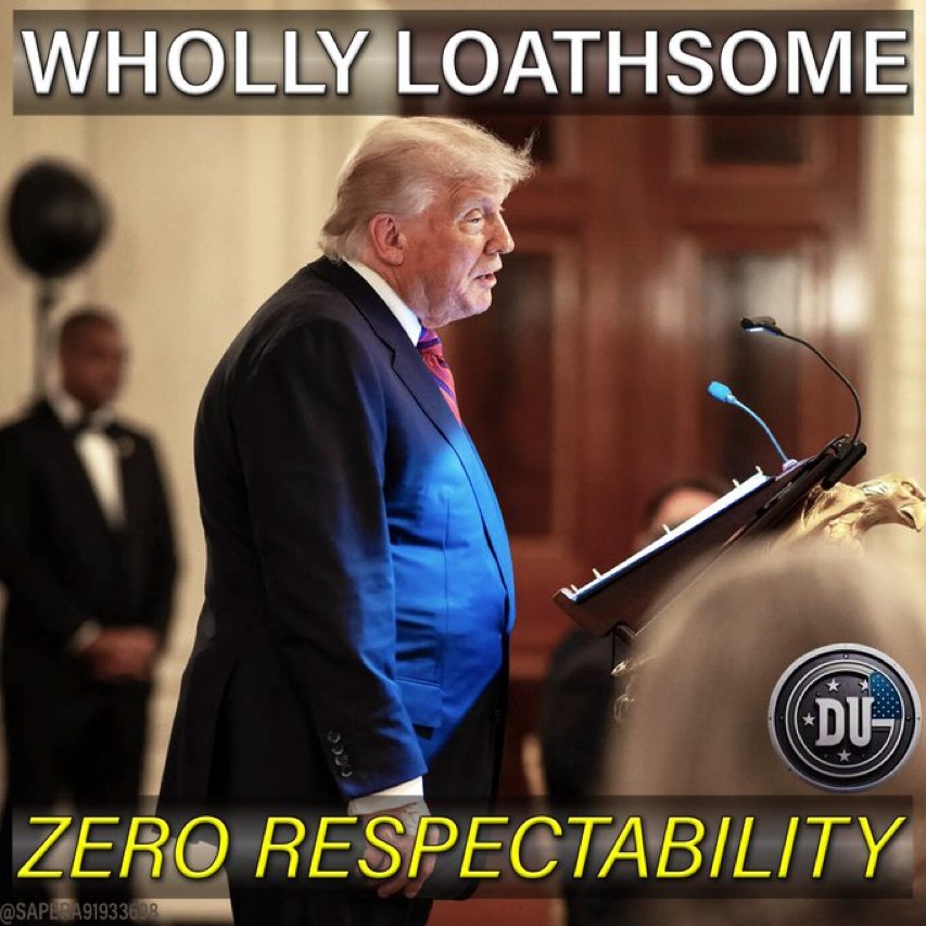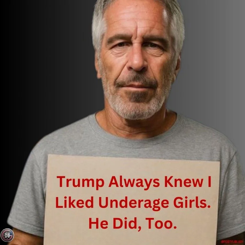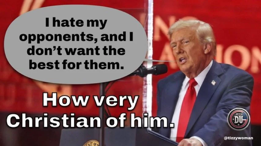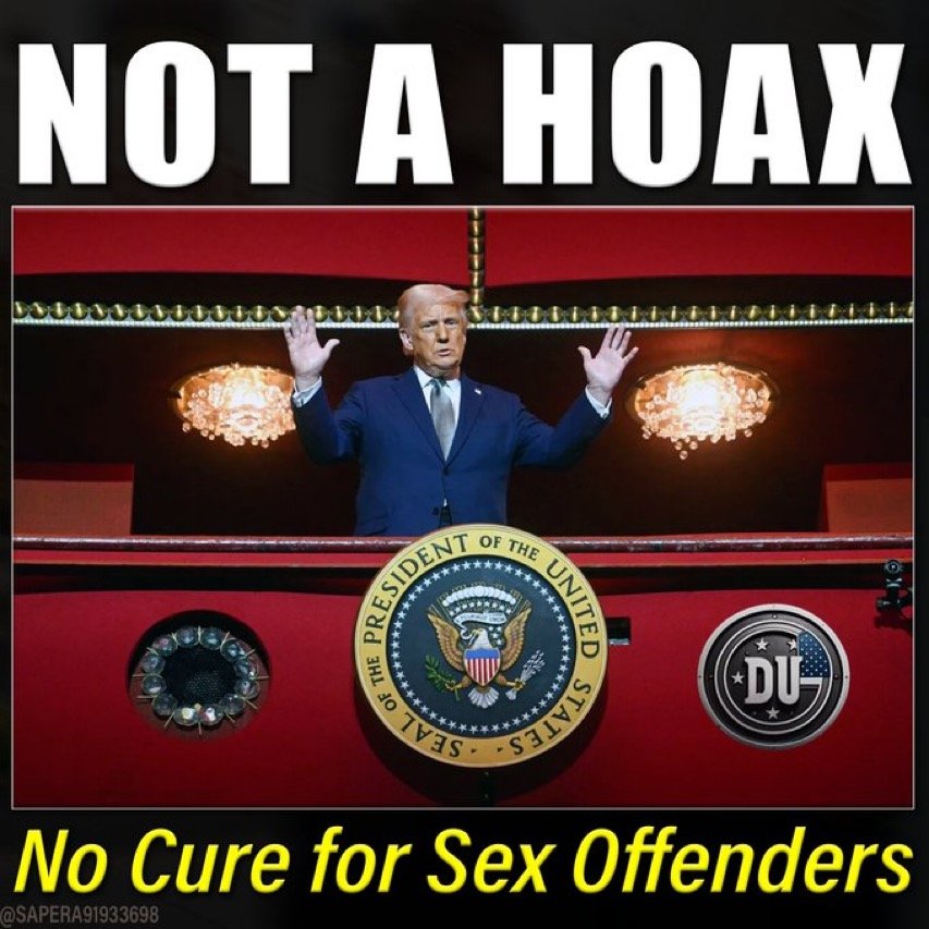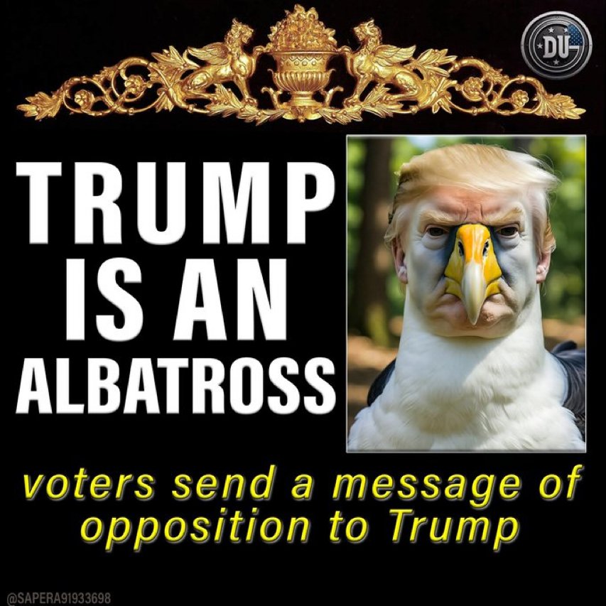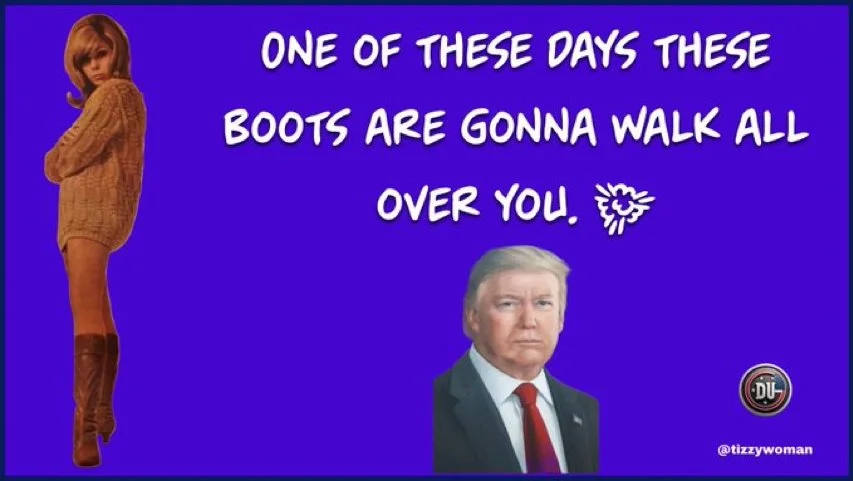 Image of Donald Trump with a red prohibition sign across his face. Text at the top says "Just say, 'No Trump'" and at the bottom says "Owes $93 million in sexual abuse judgements."