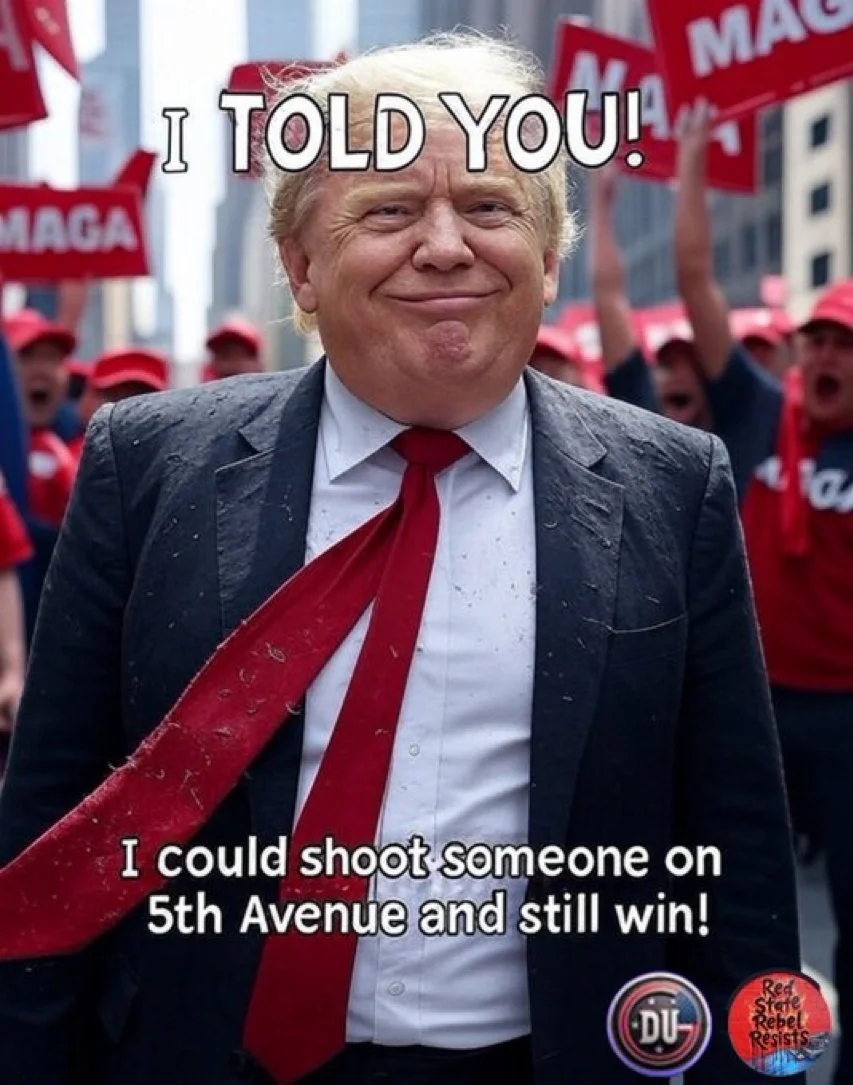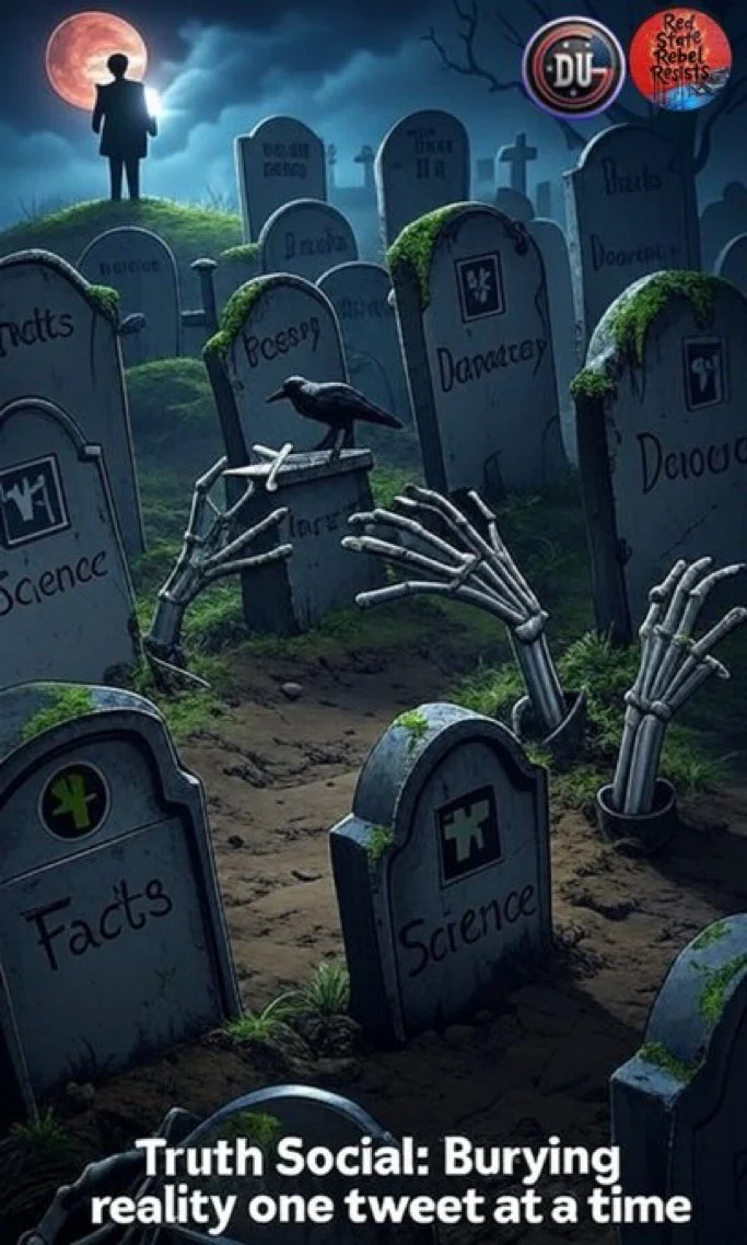A photo of Donald Trump with the word 'TRUTH' in large letters above his head and the text "Leadership by force and ridicule" below.