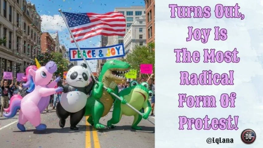 A colorful graphic with red, yellow, green, and black curved shapes on the left side. Text in bold red and yellow on the right side reads 'Juneteenth' and 'Honor the struggle! Celebrate the freedom!'. There is a small logo in the bottom right corner and a social media handle '@LQLANA' in the bottom left corner.
