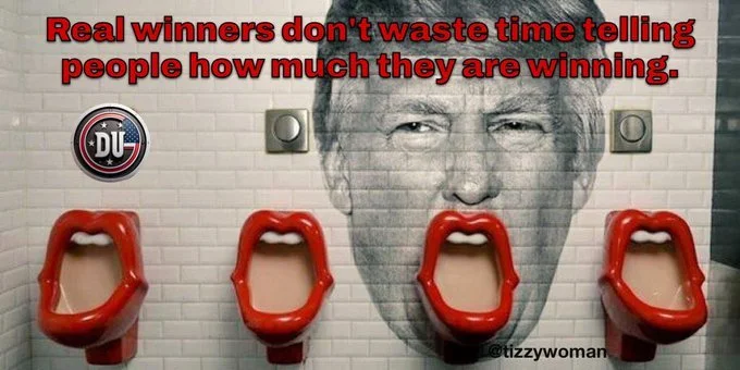 A photoshopped image of a person's head, resembling Donald Trump, coming out of a toilet bowl with water. Text at the top reads 'No one expected it.' and at the bottom 'DOWN THE TUBES' in bold yellow letters.